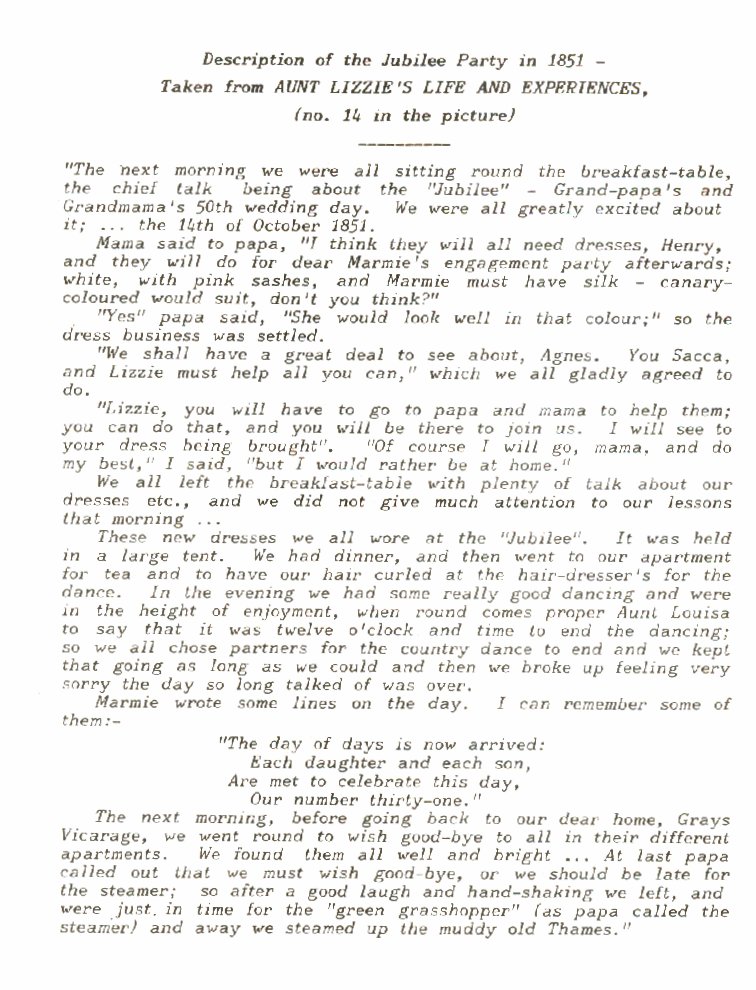 1851 Panter Party – Original leaflet by Walter Waring 1851-10-14 Simon Welander Panter family, Reunions/Parties 0 Cover: Address: Attendees: Aunt Lizzie’s description: Jubilee Song: Visual Key: 1851